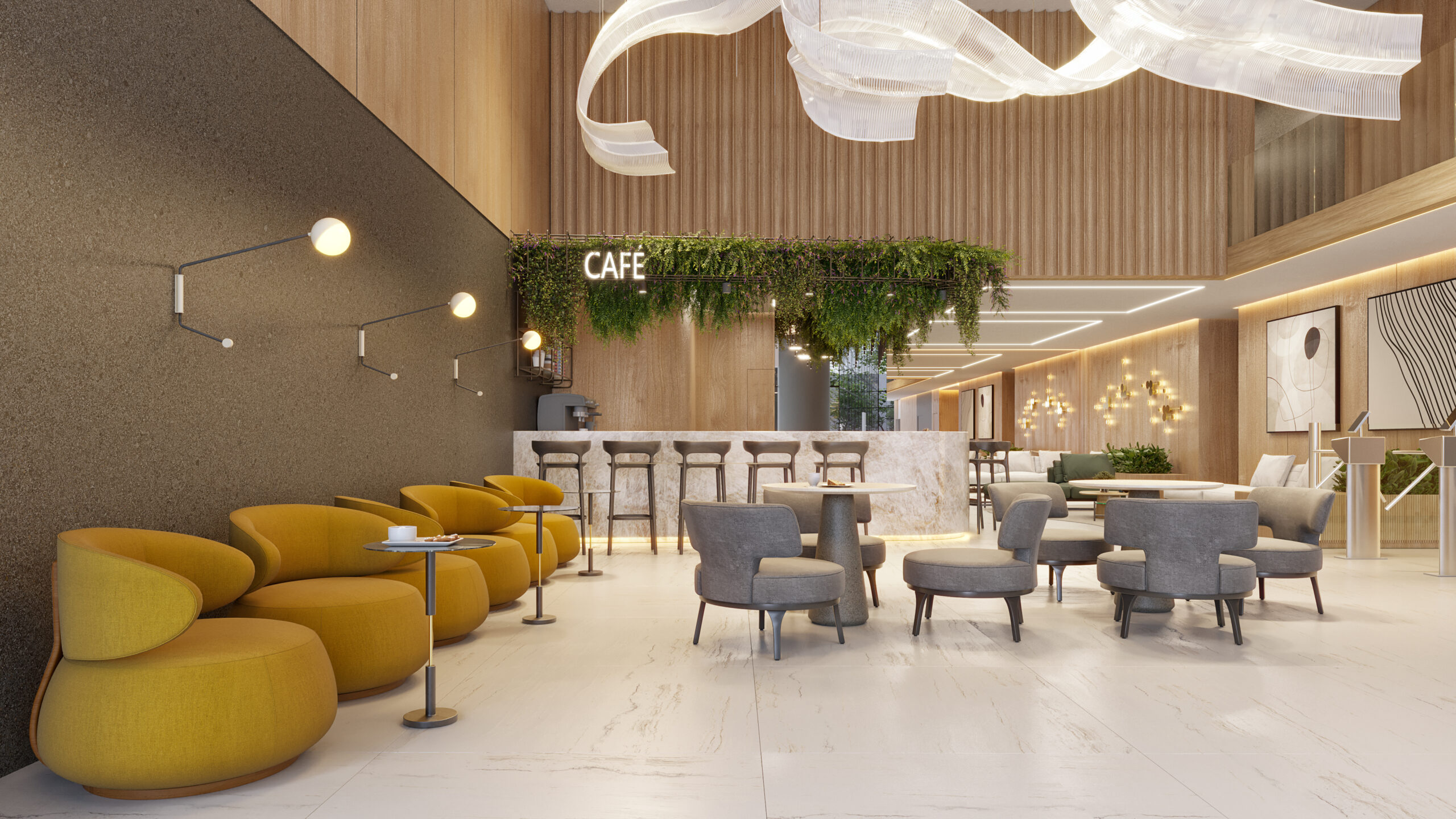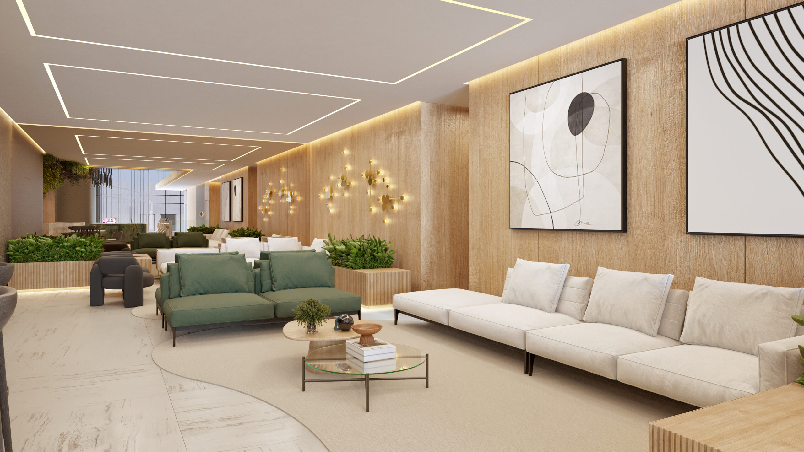 Ambientes totalmente mobiliados e decorados por profissionais renomados, oferecendo espaços de lazer, convivência e bem-estar que refletem o design sofisticado.